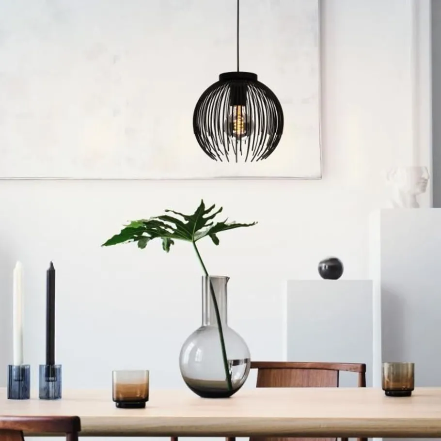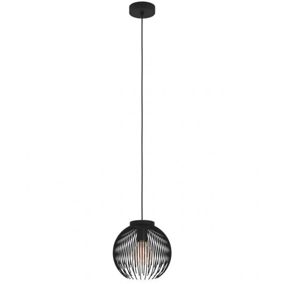 De trendy enkellichts hanglamp uit de Alhabia serie van Eglo heeft een origineel design, deze stalen lamp met zwarte spijlen heeft een luxe look en maakt de interieur helemaal af.