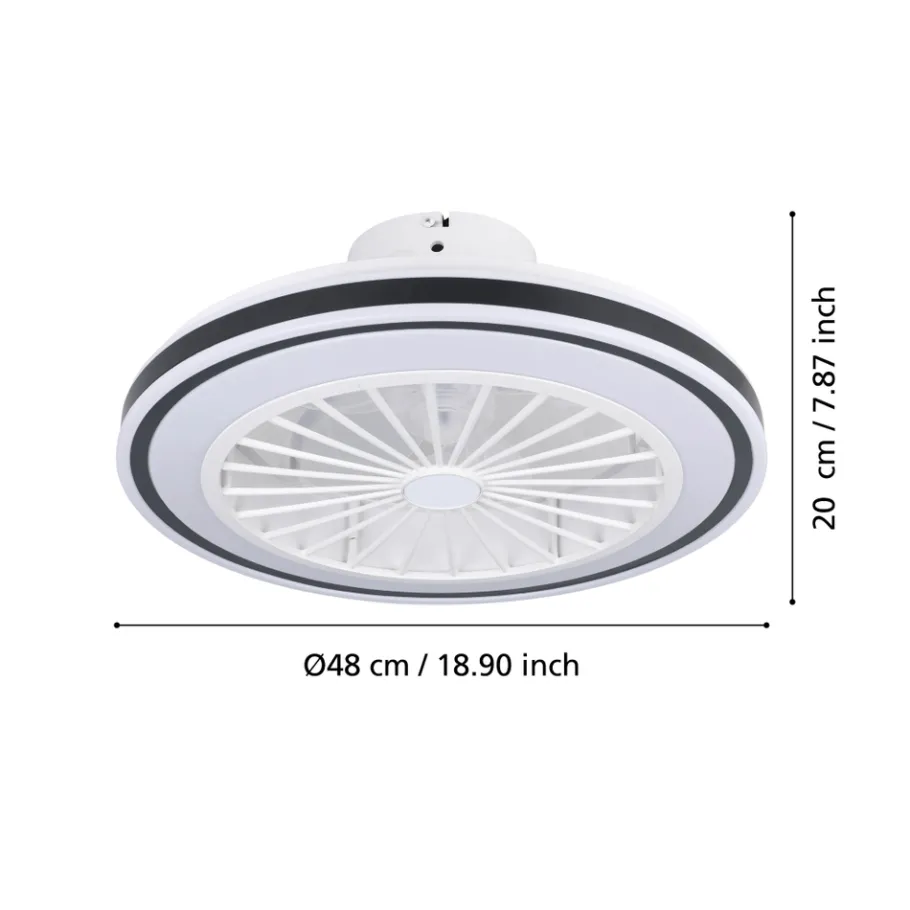 Eglo ALMERIA Ventilator met licht ABS wit, zwart / acryl melkkleurig H: 190 mm | Ø 480 mm New