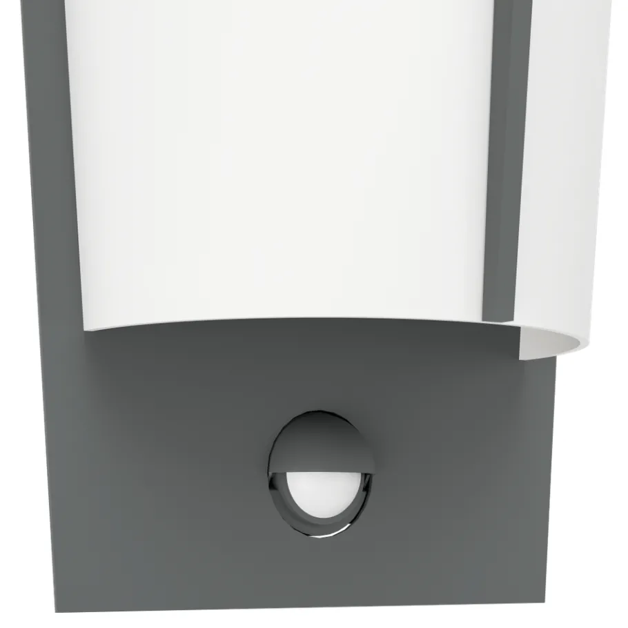 De LED-buitenwandlamp BREGANZO 1 heeft een behuizing van gegalvaniseerd metaal in antracietkleur, waarvan de buitenranden zachtjes rond de witte kunststof kap buigen. Het armatuur is uitgerust met een bewegingssensor die het licht automatisch inschakelt. Dit helpt om slecht zichtbare gebieden te verlichten en ongewenste bezoekers af te schrikken. De geïntegreerde schemersensor meet de omgevingshelderheid en schakelt het licht alleen in als het echt nodig is. De geïntegreerde LEDs geven een aangenaam warm wit licht. Het armatuur is bovendien spatwaterdicht (IP44), zodat het zonder vrees buiten kan worden gebruikt. Dankzij haar tijdloze design past ze in elke moderne buitenruimte: de ideale buitenwandlamp voor ingangen, terrassen of balkons.