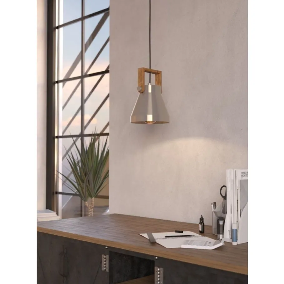 Eglo CAWTON hanglamp staal, hout staal, rustiek bruin H: 1100 mm | Ø 160 mm Outlet