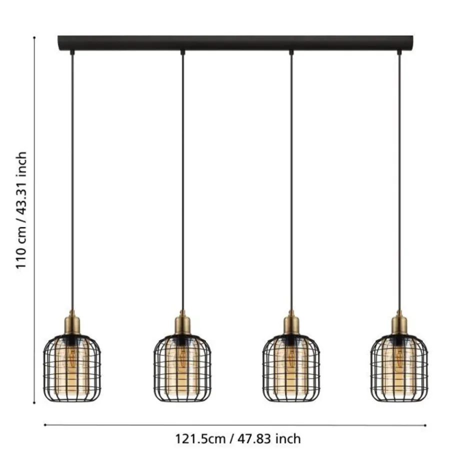 Eglo CHISLE PENDEL 4xE27 ZWART/BRONS/AMBER New