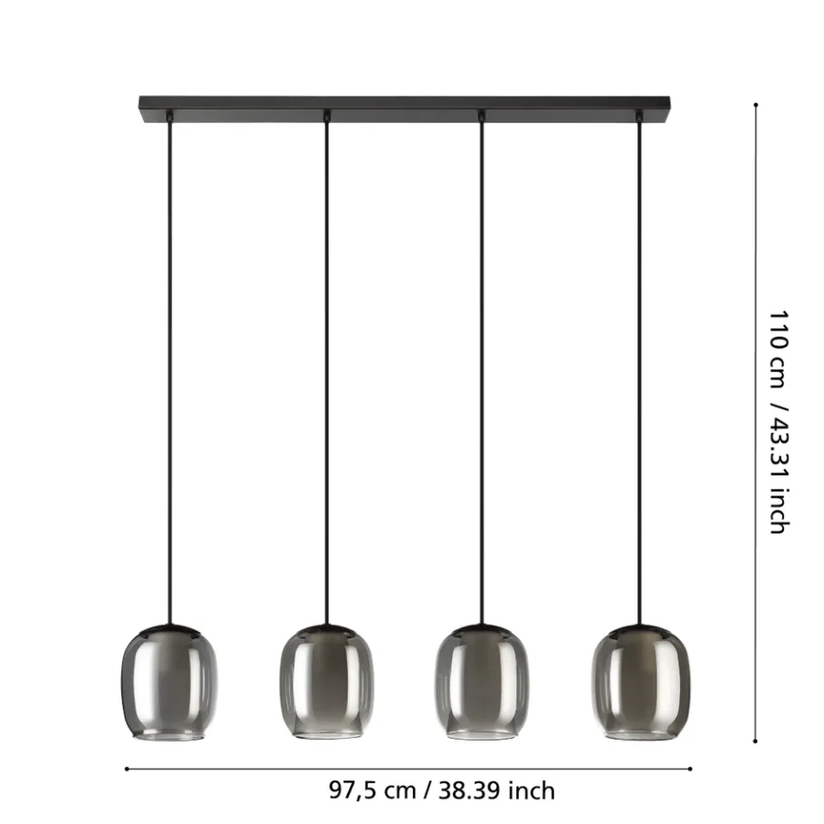 Eglo CIAMPINO hanglamp staal zwart / glas gestoomd grijs H: 1100 mm Hot