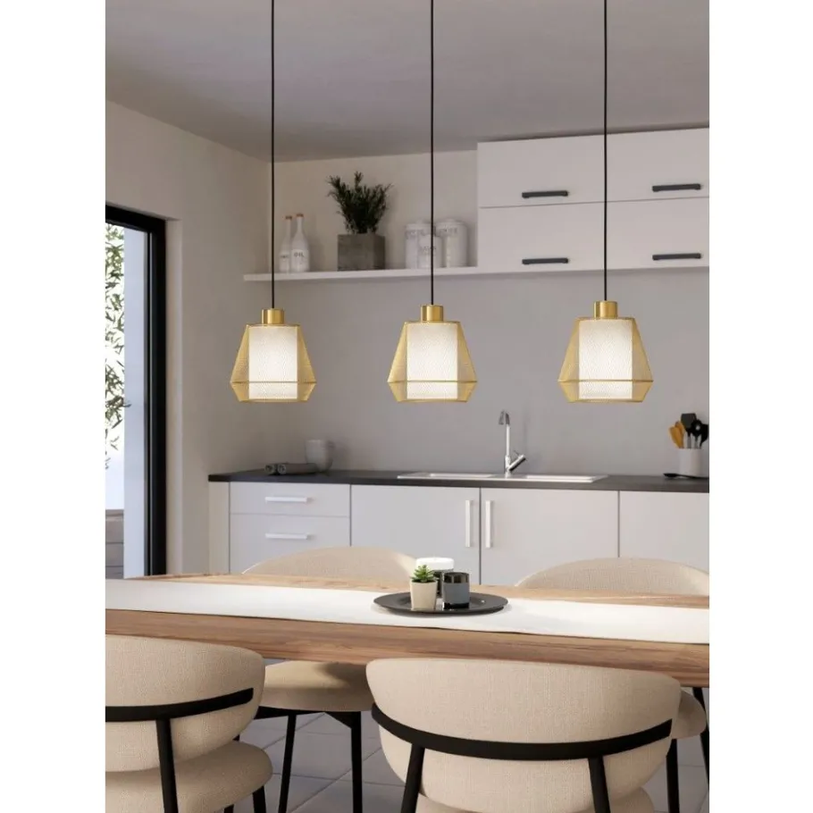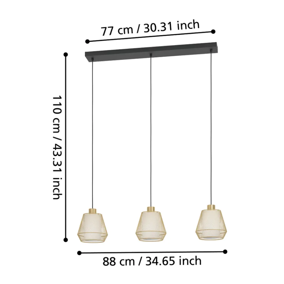 Eglo CIUDADELA hanglamp staal zwart / staal, textiel geborsteld messing, wit H: 1100 mm