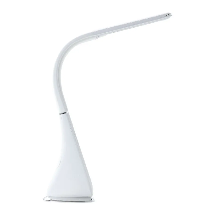 De COGNOLI LED bureaulamp is gemaakt van wit kunststof met chromen details. De geïntegreerde LEDs geven een neutraal wit licht dat ideaal is om te werken. Dankzij de flexibele verlichtingsarm creëert je in een handomdraai gerichte verlichting op je werkplek. De bureaulamp heeft een drietraps-toetsdimmer. Naast de nuttige functies van weergave van tijd, temperatuur en datum, beschikt de armatuur ook over een alarmfunctie met verschillende beltonen. Met zijn moderne look en elegante plastic details die doen denken aan decoratieve lederen stiksels, wordt deze lamp zeker een praktische en decoratieve must-have voor je werkplek, zowel op kantoor als thuis.