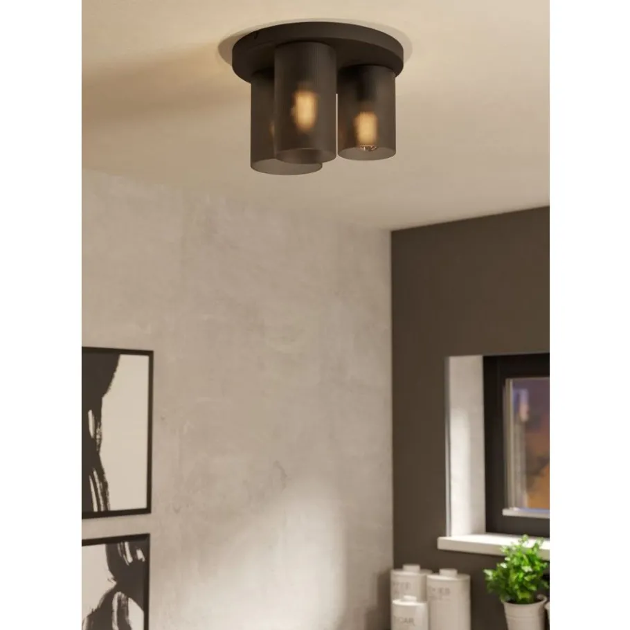 Eglo COLOMERA Plafondarmaturen staal zwart / Glas mat grijs H: 240 mm | Ø 350 mm Best
