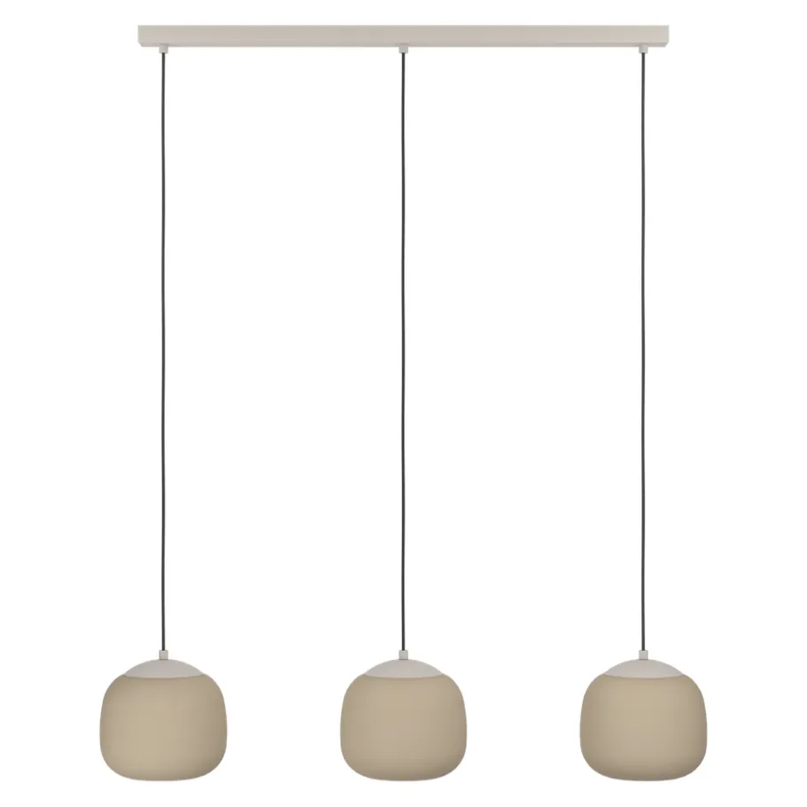 De Caminio hanglamp is samengesteld uit een taupekleurige stalen staaf en drie zandkleurige conische gesatineerd glazen kappen. Geribbeld glas geeft je een chique en trendy touch in je interieur, of het nu in de eetkamer, slaapkamer of keuken is. Het wordt verlicht door drie E27-lampen naar keuze.