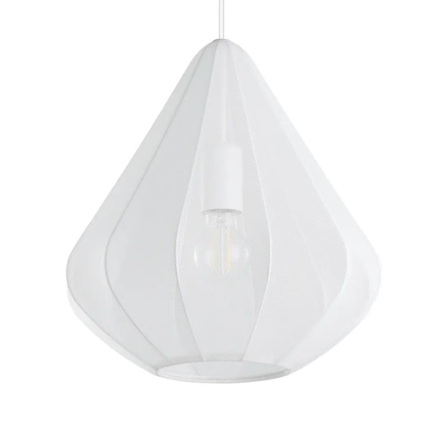 Deze DOLWEN hanglamp is gemaakt van wit staal met een kap van 33 cm diameter bekleed in doorschijnende mesh stof. Hierdoor geeft het een inkijk in de E27 fitting waar een heel mooie warme lichtbron in zou passen (niet inbegrepen). Door zijn open vorm en industriële look past deze perfect in een moderne huiskamer of strakke slaapkamer.