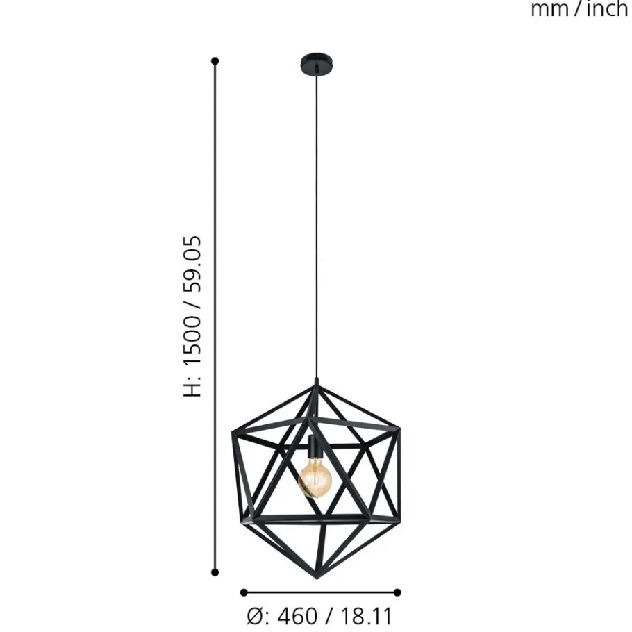 Eglo EMBLETON hanglamp staal zwart H: 1500 mm | Ø 460 mm Hot