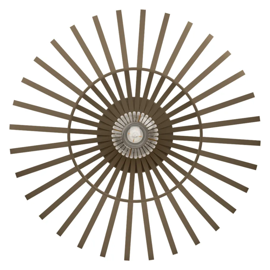 Deze Espinal plafondlamp is gemaakt van bronskleurig staal en heeft een E27-lichtbron nodig om te schijnen. Deze is niet inclusief. Hij meet 22cm hoog en heeft een diameter van 38,5cm. Deze plafondlamp zorgt voor een mooi lichtspel in je woonkamer, keuken of hal.