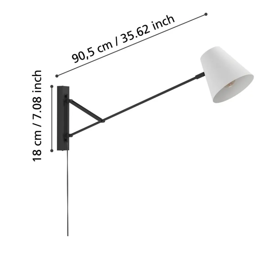 Eglo FORNACI Wandlamp staal zwart / Kunststof wit H: 135 mm Outlet