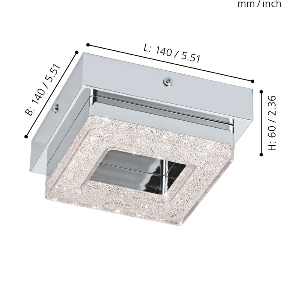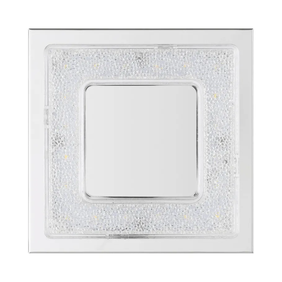 De LED-plafondlamp FRADELO bestaat uit een vierkante metalen behuizing in chroomkleur en een transparant kunststof verlichtingselement met transparante granietkristallen binnenin. De kristallen zorgen voor een sprankelend en verfijnd effect. De geïntegreerde LED’s geven een aangenaam warm wit licht. Dankzij het tijdloze ontwerp past deze plafondlamp perfect in moderne interieurs en is ze geschikt voor elke ruimte, of het nu gaat om een keuken, woonkamer, slaapkamer, hal of eetkamer.