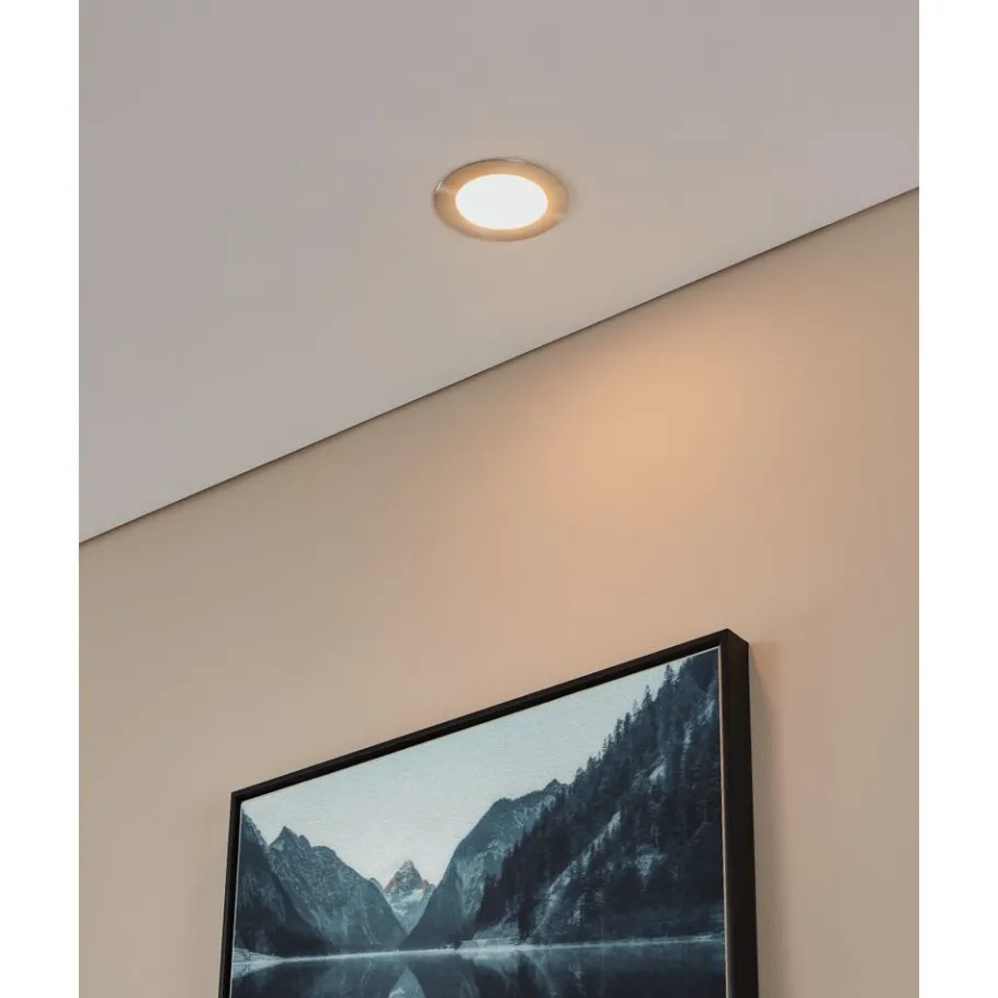 De LED-inbouwarmatuur FUEVA 5 met een diameter van 117 mm is vervaardigd uit mat nikkel metaal. Dankzij de zeer geringe inbouwdiepte van slechts 26 mm past het perfect in elk interieur en kan het ook in isolatie worden ingebouwd. De geïntegreerde LEDs stralen een aangenaam warm wit licht uit en blijven onzichtbaar dankzij de witte diffuser. Voor de installatie is een uitsparing van 105 mm diameter vereist. Dankzij het tijdloze ontwerp van deze inbouwspot kan hij in elke ruimte worden gebruikt, of het nu gaat om de keuken, de woonkamer, de slaapkamer, de hal of de eetkamer.