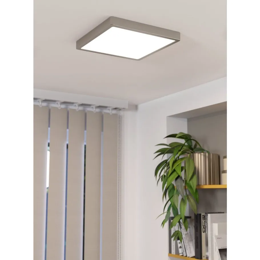 De LED-opbouwarmatuur FUEVA 5 uit mat nikkel metaal past dankzij haar zeer geringe hoogte van slechts 28 mm en haar vierkante vorm met afgeronde hoeken in nagenoeg elke interieurstijl. De geïntegreerde LEDs stralen een neutraal wit licht uit en blijven onzichtbaar dankzij de witte diffuser. Dankzij de geringe hoogte kan deze plafondlamp ook probleemloos als wandlamp worden gebruikt. Deze hoogwaardige armatuur zonder zichtbare schroeven op de behuizing is zeer eenvoudig te installeren dankzij de speciale plafondbeugel. Het tijdloze ontwerp en het neutraal witte werklicht van deze opbouwarmatuur zijn perfect voor elke ruimte waar een bepaalde zone goed verlicht moet worden, bijvoorbeeld in de keuken, de gang, de wasruimte of het kantoor.