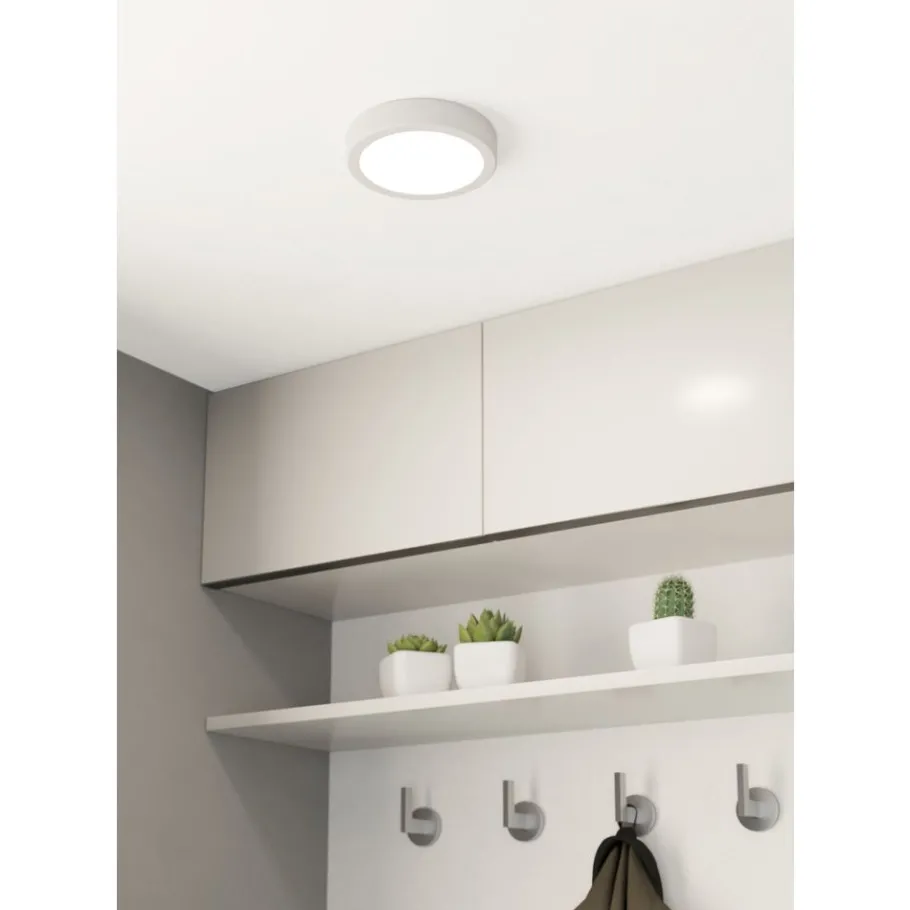 De LED opbouwarmatuur FUEVA 5 uit wit metaal past dankzij haar zeer geringe hoogte van slechts 28 mm in nagenoeg elke interieurstijl. De geïntegreerde LEDs stralen een neutraal wit licht uit en blijven onzichtbaar dankzij de witte diffuser. Dankzij de geringe hoogte kan deze plafondlamp ook probleemloos als wandlamp worden gebruikt. Deze hoogwaardige armatuur zonder zichtbare schroeven op de behuizing is zeer eenvoudig te installeren dankzij de speciale plafondbeugel. Het tijdloze design en het neutraal witte werklicht van deze opbouwarmatuur zijn ideaal voor alle ruimtes waar een bepaalde zone goed verlicht moet worden, bijvoorbeeld in de keuken, de gang, de wasruimte of het kantoor.