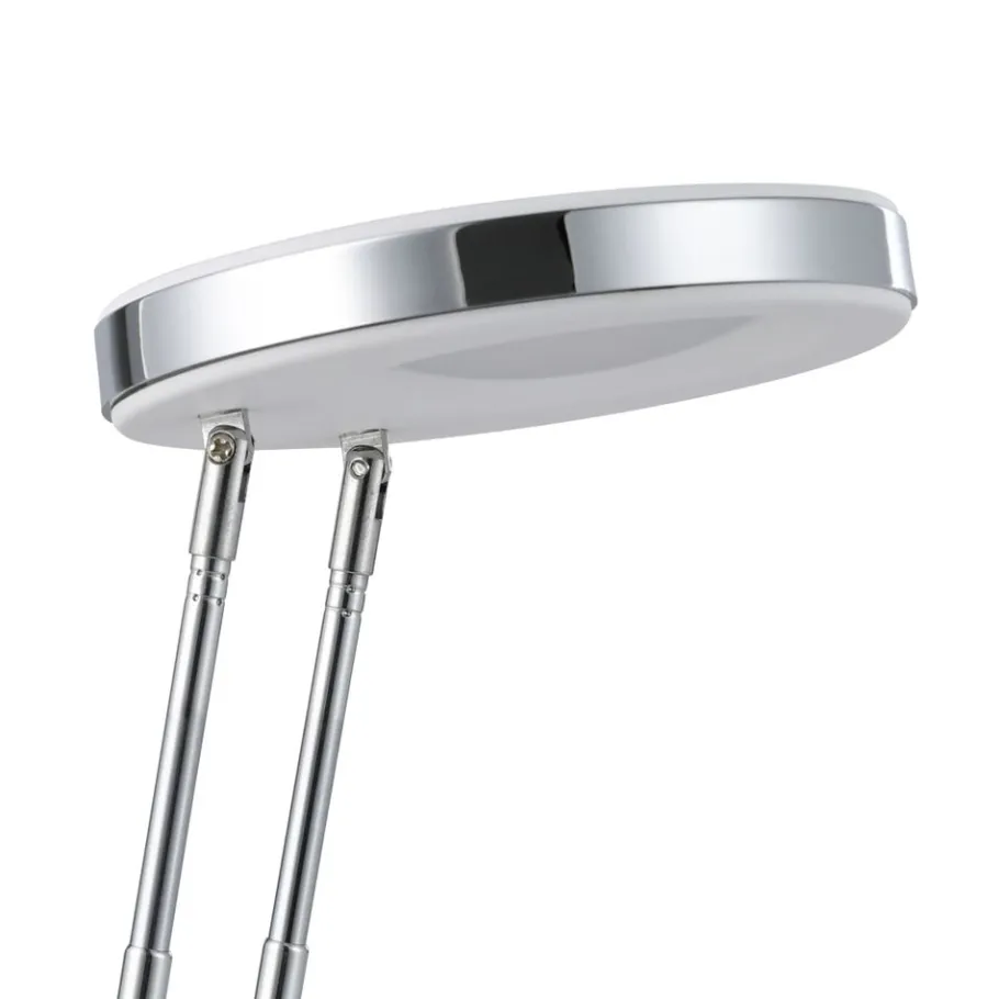 De GEXO LED bureaulamp is gemaakt van verchroomd metaal met witte kunststof details. Dankzij de uitschuifbare lamphals en de draaibare lampkop is een optimale, gerichte verlichting van je werkplek in een handomdraai mogelijk. De geïntegreerde LEDs geven een aangenaam warm wit licht. De tuimelschakelaar op de lampvoet maakt het gemakkelijk om de lamp aan en uit te schakelen. Met zijn tijdloze ontwerp biedt de bureaulamp praktische verlichting voor je werkplek, zowel op kantoor als thuis.