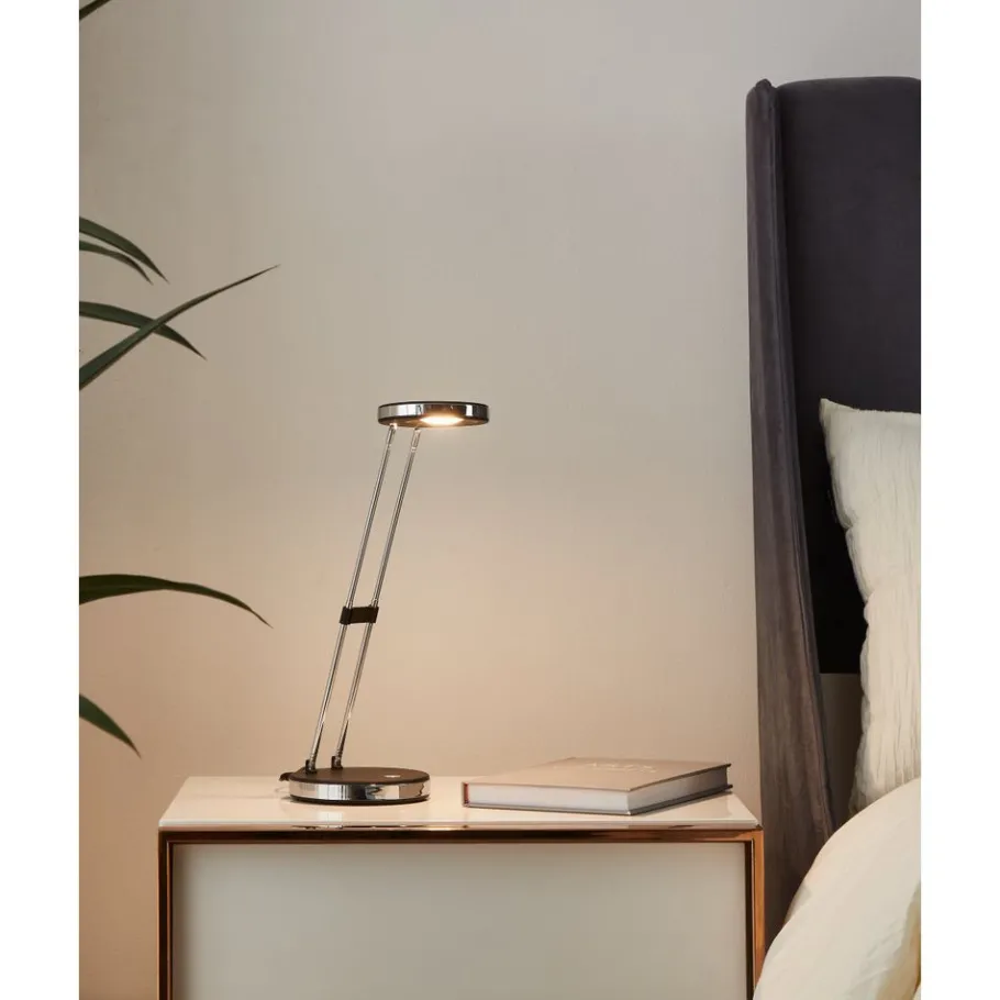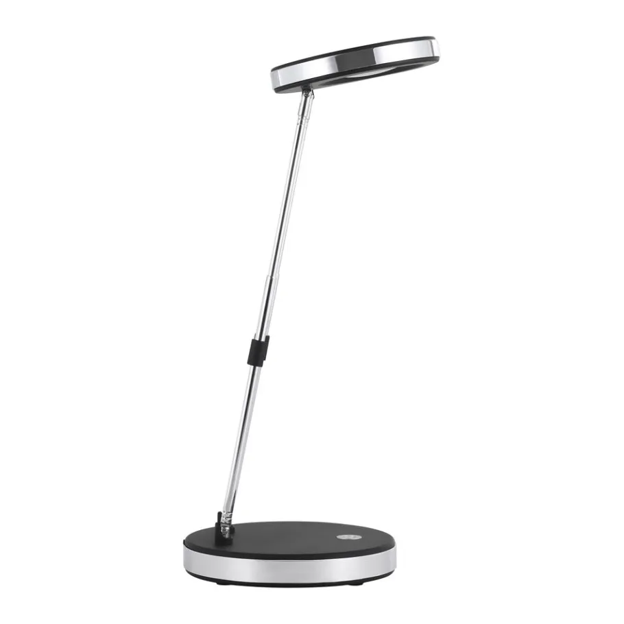 De GEXO LED bureaulamp is gemaakt van verchroomd metaal met zwarte kunststof details. Dankzij de uitschuifbare lamphals en de draaibare lampkop kan je in een handomdraai je werkplek optimaal en doelgericht verlichten. De geïntegreerde LEDs geven een aangenaam warm wit licht. De tuimelschakelaar op de lampvoet maakt het gemakkelijk om de lamp aan en uit te schakelen. Met zijn tijdloze ontwerp biedt de bureaulamp praktische verlichting voor je werkplek, zowel op kantoor als thuis.