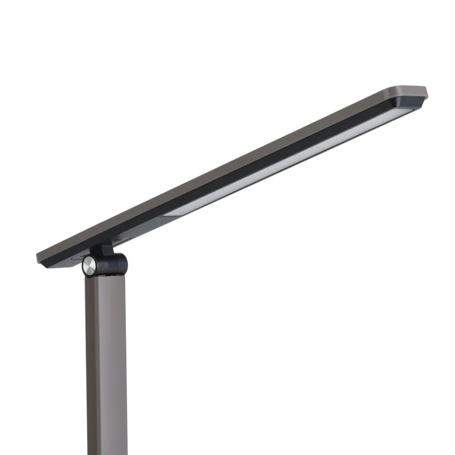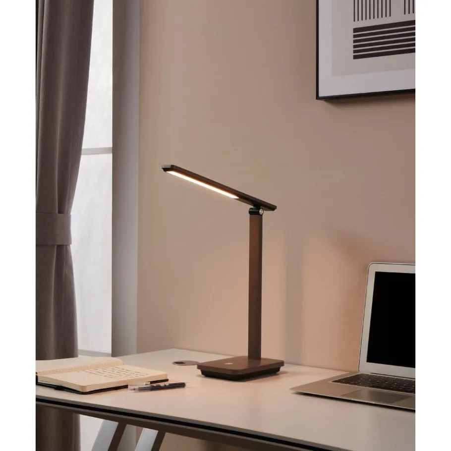 Deze Iniesta bureaulamp met driestaps dimmer is gemaakt van capuccinokleurige en zwarte kunststof. Hij schijnt een aangenaam licht van 360 lumen dat verstelbaar is van lichtkleur (3000-6500K). Hij meet 35cm hoog, 33cm lang en 3,5cm breed.