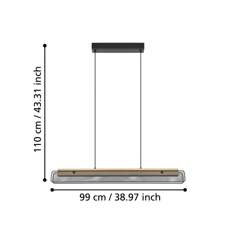Eglo KOKOMO-Z hanglamp staal, hout zwart, bruin / aluminium, kunststof zwart, wit H: 1100 mm Outlet