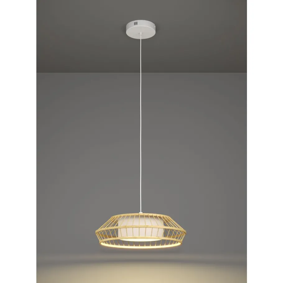 De KOKOMO-Z LED hanglamp uit de Smart Home connect.z serie bestaat uit een rechthoekige behuizing van verend rubberhout, gecombineerd met een mat wit kunststof verlichtingsoppervlak en twee zwarte rasterelementen. De geïntegreerde LED’s stralen een aangenaam licht uit volgens jouw voorkeuren. Je kunt kiezen tussen warm wit, neutraal wit en koel wit licht, met een veelheid aan RGB-lichtkleuren. De hanglamp wordt bediend via de gratis app (AwoX Home Control) en geeft je toegang tot andere comfortfuncties zoals dimmer, timer, aanwezigheidssimulatie en nog veel meer. Het armatuur wordt bediend via Bluetooth of ZigBee 3.0 en kan ook worden bediend door een compatibele spraakassistent. De intelligente pendel kan ook worden bediend met een apart verkrijgbare afstandsbediening. Met zijn industriële ontwerp past deze armatuur perfect in verschillende interieurstijlen en zorgt hij voor moderne verlichting in de woonkamer of eetkamer.