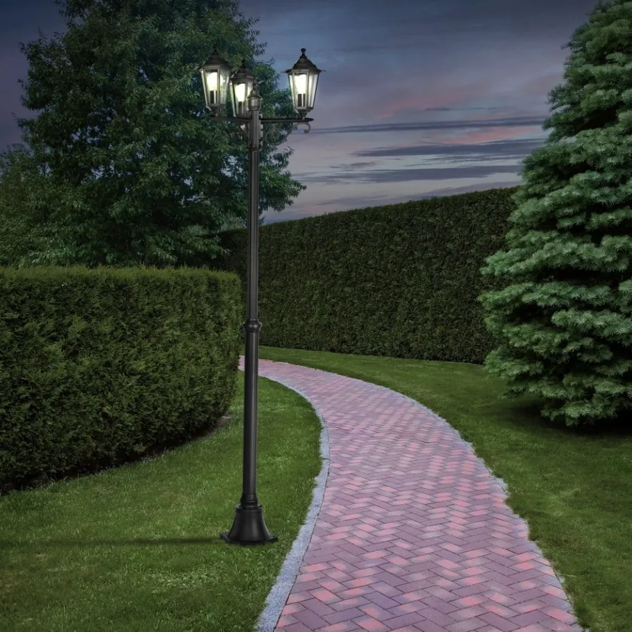 De BELFORT 4 buitenpaal met zijn lantaarnachtige ontwerp bestaat uit een zwart gegoten aluminium behuizing met transparant glas. Deze buitenlamp is spatwaterdicht (IP44) en kan dus zonder angst buiten worden gebruikt. De klassieke stijl is een aanvulling op jouw buitenruimte en biedt voldoende verlichting, bijvoorbeeld voor een stedelijke villa met een antieke of art nouveau-stijl. De afgebeelde lampen zijn niet inbegrepen. De buitenlamp van 192 cm is compatibel met elke E27-lichtbron.
