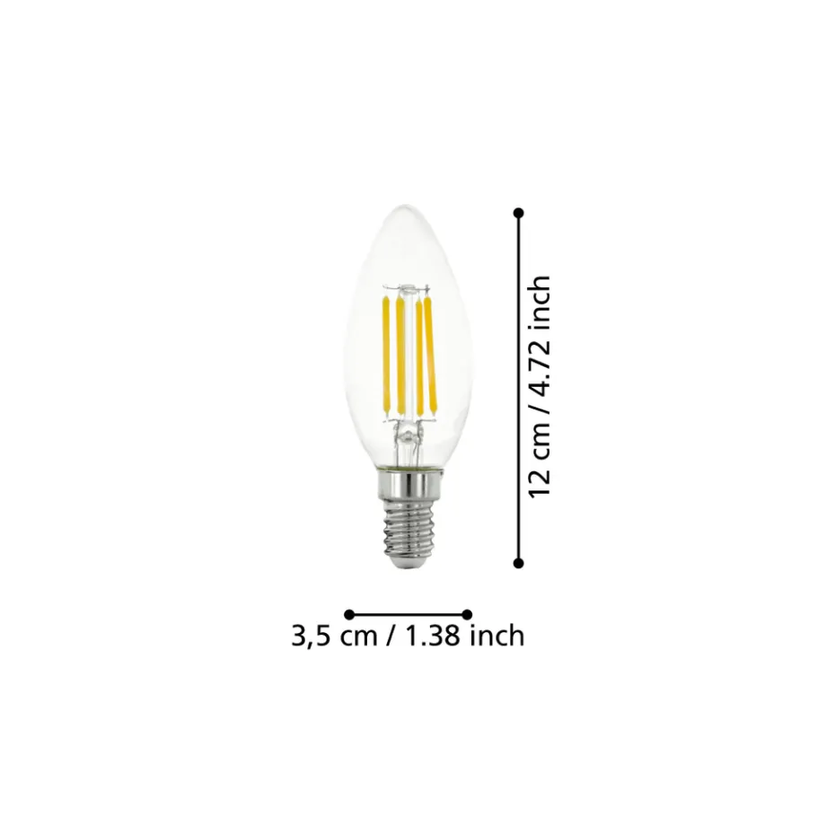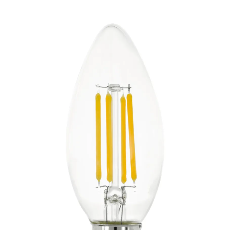 De E14 LED lamp met zichtbaar filament is gemaakt van helder glas. De 4 Watt LED lamp (C35) geeft een aangenaam warm wit licht van 470 lumen. Met zijn klassieke kaarsvorm is deze LED lamp ideaal voor gebruik als lamp voor een kroonluchter.