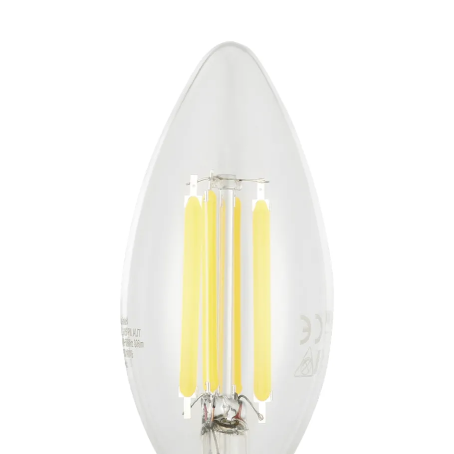 De E14 LED gloeilamp is gemaakt van helder glas. De 7 Watt LED lamp (C35) verspreidt een aangenaam warm wit licht van 806 Lumen in je kamer. Met zijn klassieke kaarsvorm is deze LED-lamp ideaal als bijvoorbeeld kroonluchterlamp.