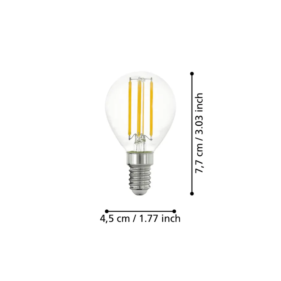 De E14 LED gloeilamp is gemaakt van helder glas. De klassieke 7 Watt LED lamp (P45) verspreidt een aangenaam warm wit licht van 806 Lumen in je kamer.