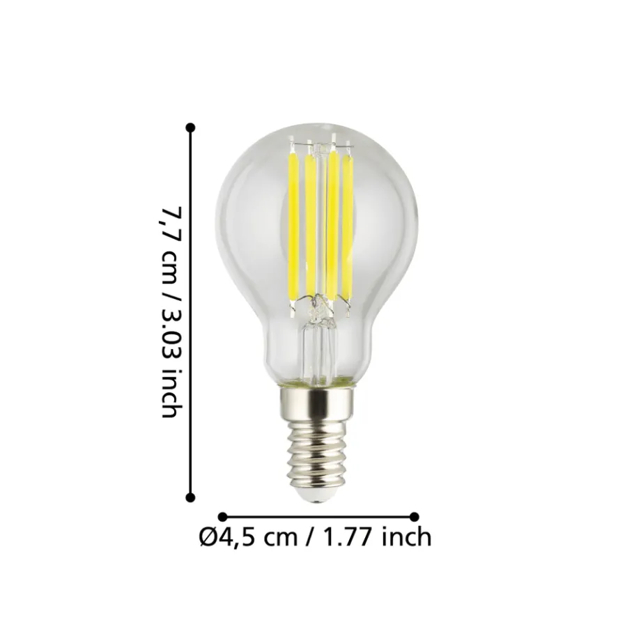 De E14 LED lichtbron is gemaakt van helder glas. De zeer efficiënte 2,2 watt LED lamp (P45) geeft een aangenaam warm wit licht met 470 lumen en bespaart ongeveer 60% van het energieverbruik in vergelijking met klasse E LED lampen. Daarom is deze lichtbron ingedeeld in EEI klasse A en heeft ook een langere levensduur tot 50.000 uur.