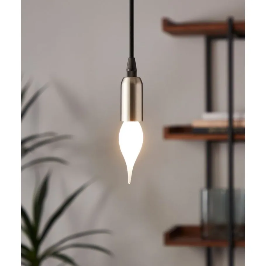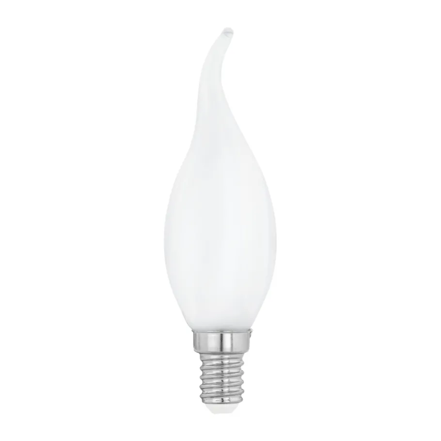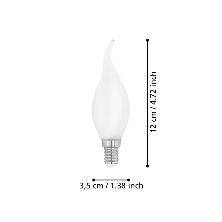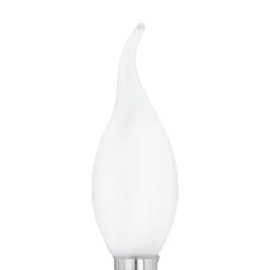De E14 LED-lamp is gemaakt van wit glas en biedt 360° verlichting dankzij de glazen behuizing. De 4 Watt LED lamp (CF35) straalt een aangenaam, warm wit licht uit van 470 lumen. Het opalen lamphuis zorgt voor een homogene en niet-verblindende verlichting. Met zijn benedenwindse kaarsvorm is deze LED-lamp ideaal als bijvoorbeeld kroonluchterlamp.