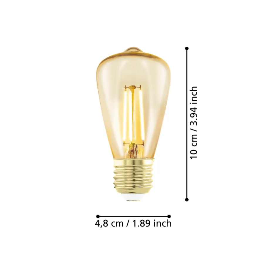 De E27 LED lichtbron is gemaakt van amberkleurig glas. De 4 Watt LED lamp (ST48) verspreidt een warm wit gouden licht van 300 lumen in je kamer en kan ook gedimd worden (afhankelijk van de dim eigenschappen van je licht). Met zijn warme licht en trendy vintage design is deze LED lamp een blikvanger in elke kamer.