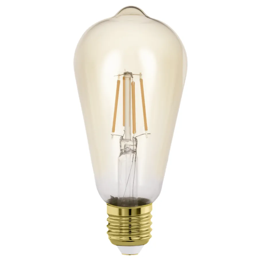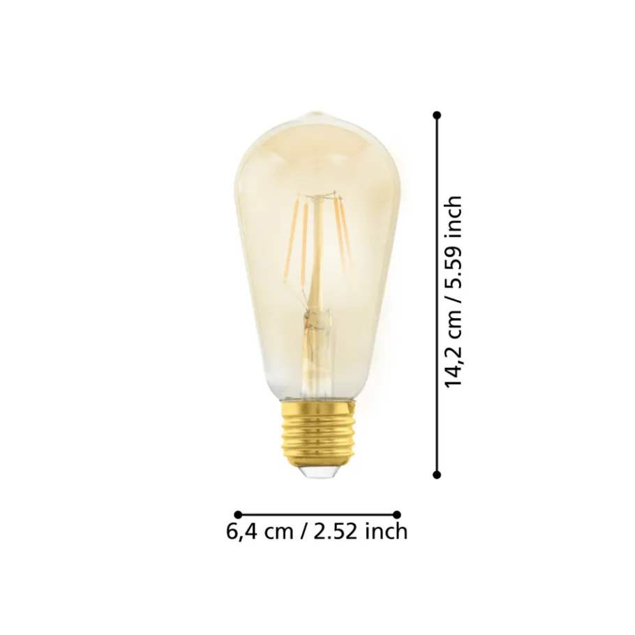 De E27 LED lichtbron is gemaakt van amberkleurig glas. De 4 Watt LED lamp (ST64) geeft een aangenaam warm wit licht van 270 lumen. Dankzij het gouden effect en het trendy vintage design kan deze LED lamp ook perfect in het zicht hangen en zal hij een blikvanger zijn in elke kamer.