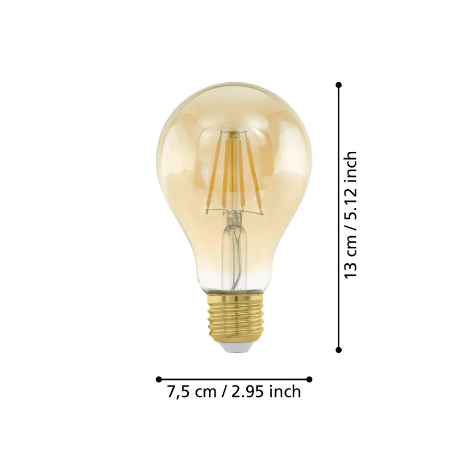De E27 LED lichtbron is gemaakt van amberkleurig glas. De 4 Watt LED lamp (A75) geeft een aangenaam warm wit licht van 320 lumen. Dankzij het gouden effect en het trendy vintage design kan deze LED lamp ook perfect in het zicht hangen en zal hij een blikvanger zijn in elke kamer.