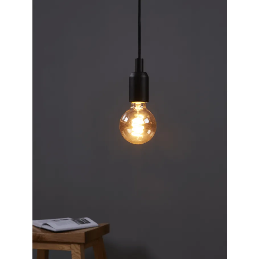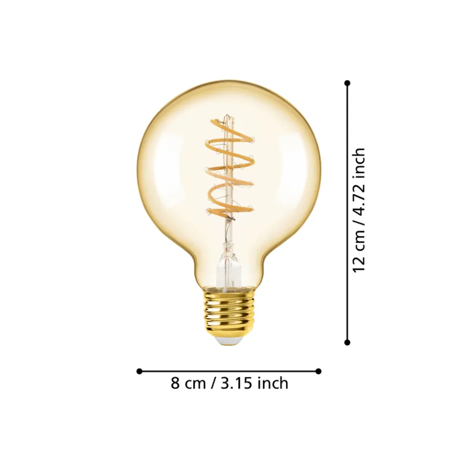 De E27 LED lichtbron is gemaakt van amberkleurig glas met spiraalvormige LEDs. De 4 Watt LED lamp (G80) geeft een aangenaam warm wit licht van 245 lumen en kan worden gedimd (afhankelijk van de dim eigenschappen van het armatuur). Dankzij het gouden effect in een trendy vintage design kan deze LED globe lamp ook perfect in het zicht hangen en zal ze een blikvanger zijn in elke kamer.
