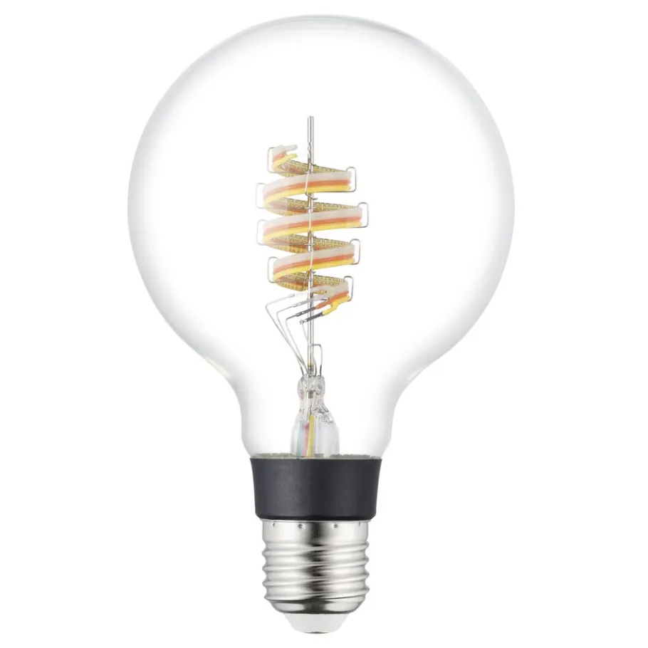 De E27 (G95) LED-lamp uit het Smart Home connect-Z assortiment is gemaakt van helder kunststof. Deze LED-lamp verspreidt een aangenaam licht volgens uw voorkeuren. Je kunt kiezen tussen warm wit, neutraal wit en koel wit, met een veelvoud aan RGB lichtkleuren. De gloeilamp wordt bediend via de gratis app (AwoX Home Control) en geeft u toegang tot andere comfortfuncties zoals dimmer, timer, aanwezigheidssimulatie en nog veel meer. De lamp wordt beheerd via Bluetooth of ZigBee 3.0. Bediening via compatibele spraakassistent is ook mogelijk. Indien nodig kunt u ook ZigBee 3.0 slimme armaturen van andere fabrikanten in het systeem integreren via een bridge (die geen deel uitmaakt van ons aanbod, controleer de technische vereisten van het betreffende product). De slimme lamp kan ook worden bediend met een apart verkrijgbare afstandsbediening. Door uw klassieke lamp te vervangen door een connect lamp. Z van EGLO kunt u uw eenvoudige armaturen omtoveren tot slimme armaturen en deze in het systeem integreren.