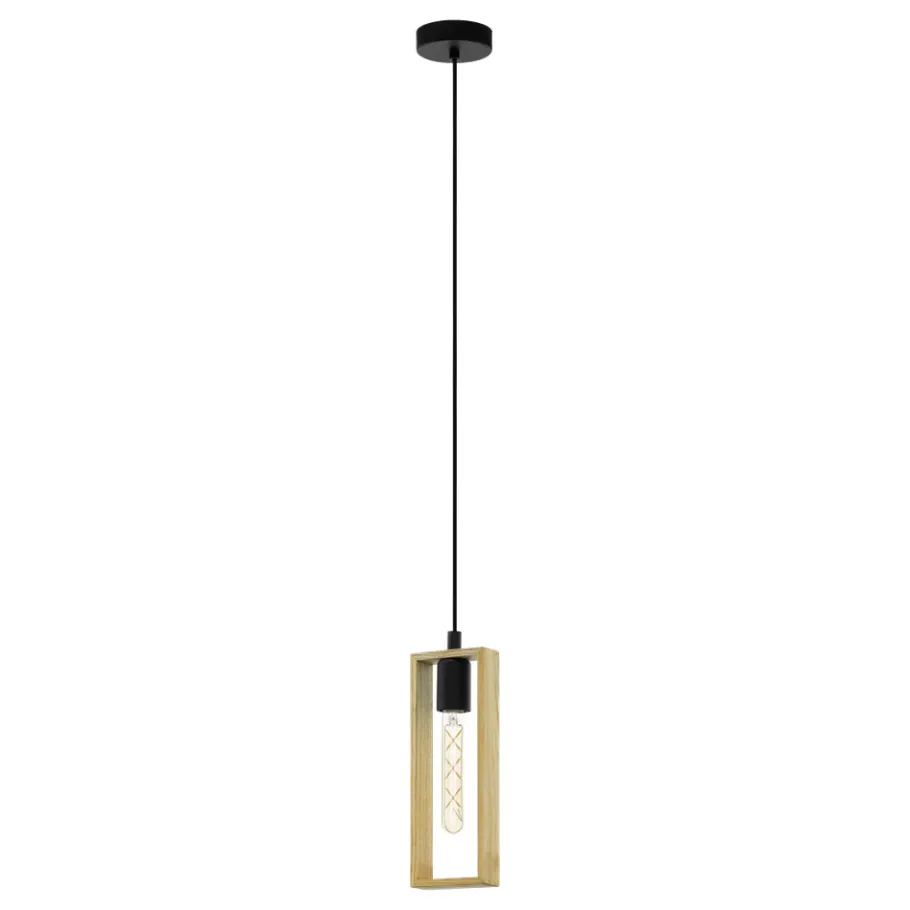 Eglo LITTLETON hanglamp staal zwart / Hout bruin H: 1100 mm Discount
