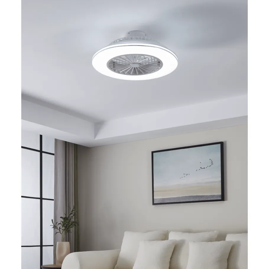 Eglo LOVISCA Ventilator met licht ABS wit, zilver / acryl melkkleurig H: 200 mm | Ø 550 mm