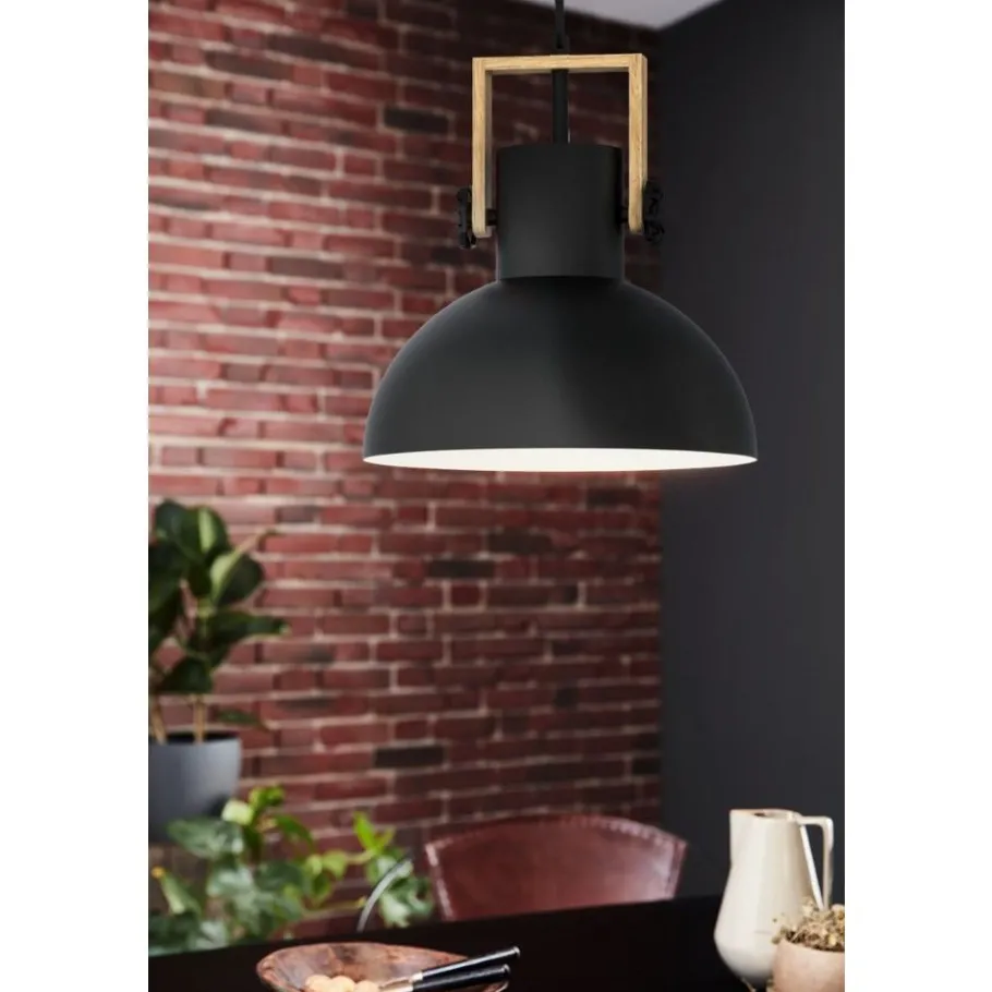 De LUBENHAM hanglamp bestaat uit een ronde zwarte stalen kap met een crèmekleurige binnenkant, gecombineerd met een hangende schakelketting. Het natuurlijke houtelement van de lampkop zorgt voor een fascinerende mix van materialen, waarmee de hanglamp perfect past in trends als vintage of industrieel. Het zorgt voor een aangename verlichting in de woonkamer of eetkamer boven de tafel. De lamp is compatibel met elke E27-lichtbron (niet inbegrepen). Dit Lubenham armatuur heeft een FSC-label wat wil zeggen dat het hout uit een bos komt waar aan verantwoord en duurzaam bosbeheer gedaan wordt. Hiermee wordt het ecosysteem van het bos in stand gehouden en worden zaken als vervuiling en schade tegengegaan, terwijl biodiversiteit en waterhuishouding beschermd worden.