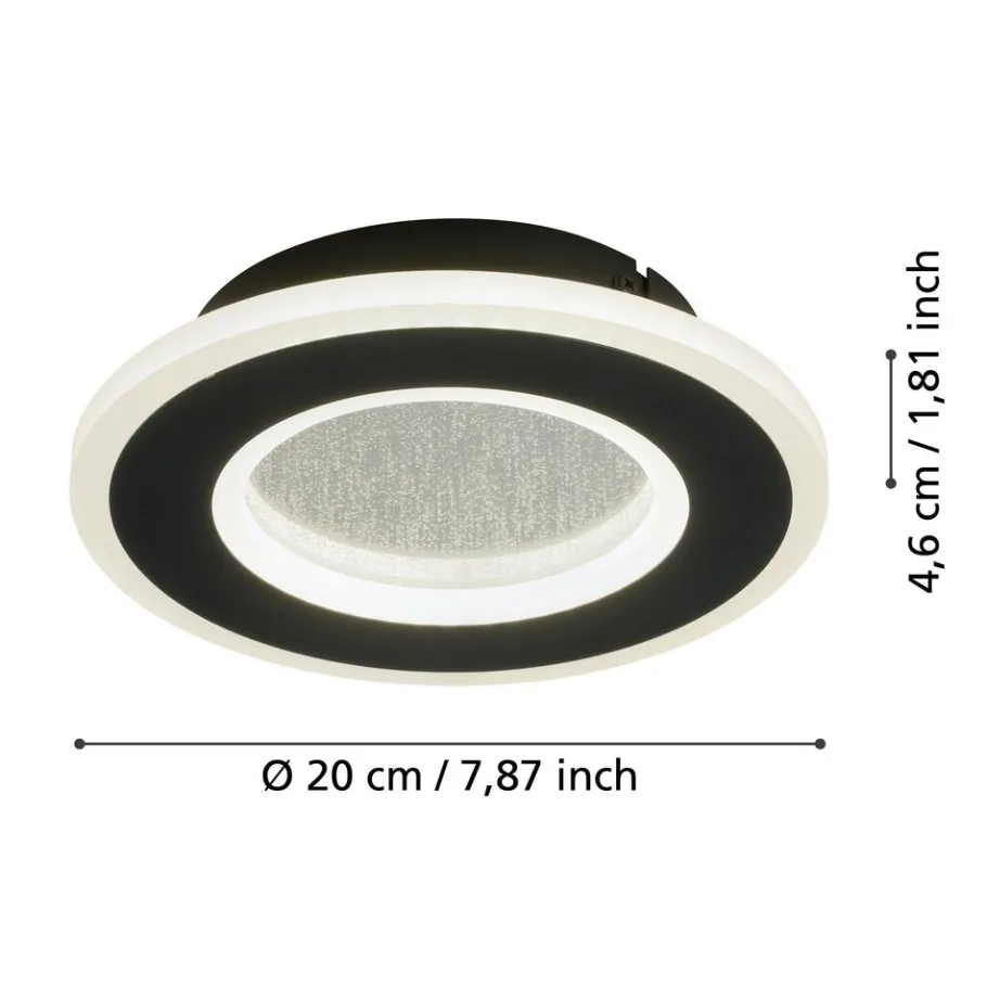 Eglo MACCHIONI Wandlamp staal, kunststof zwart, wit / kunststof met kristaleffect wit Ø 200 mm