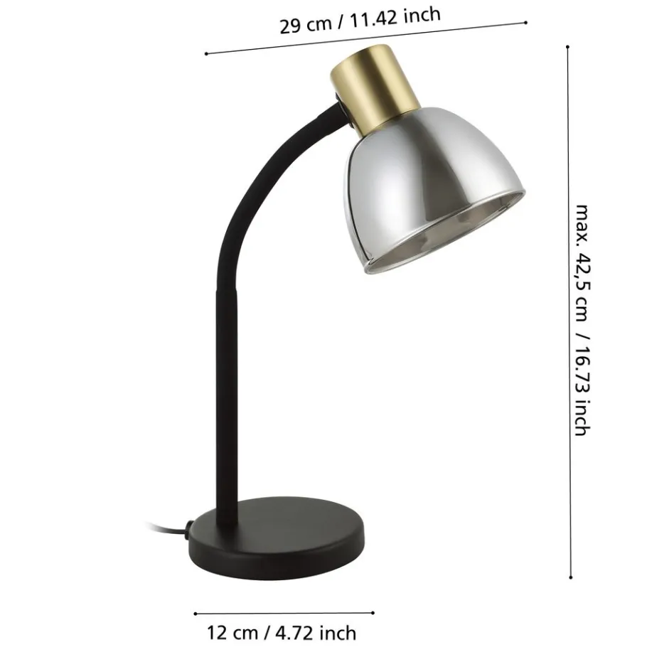 Eglo MACERE Tafellampen staal zwart, geborsteld messing / glas gestoomd zwart-transparant H: 340 mm New