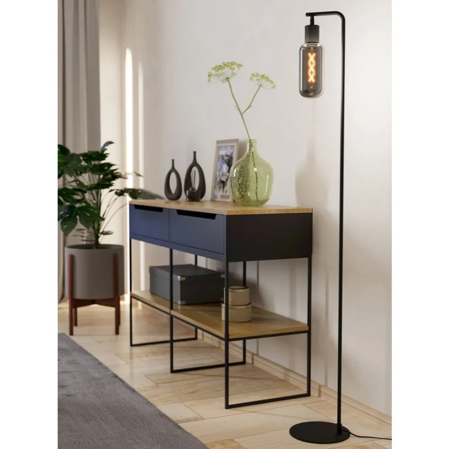 Eglo MAIONE Staande lampen staal zwart / glas gestoomd grijs H: 1510 mm Clearance