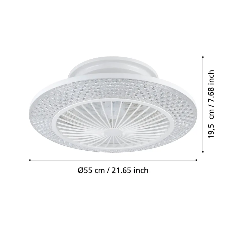 Eglo MALINSKA Ventilator met licht ABS wit / acryl kristallook H: 200 mm | Ø 550 mm New