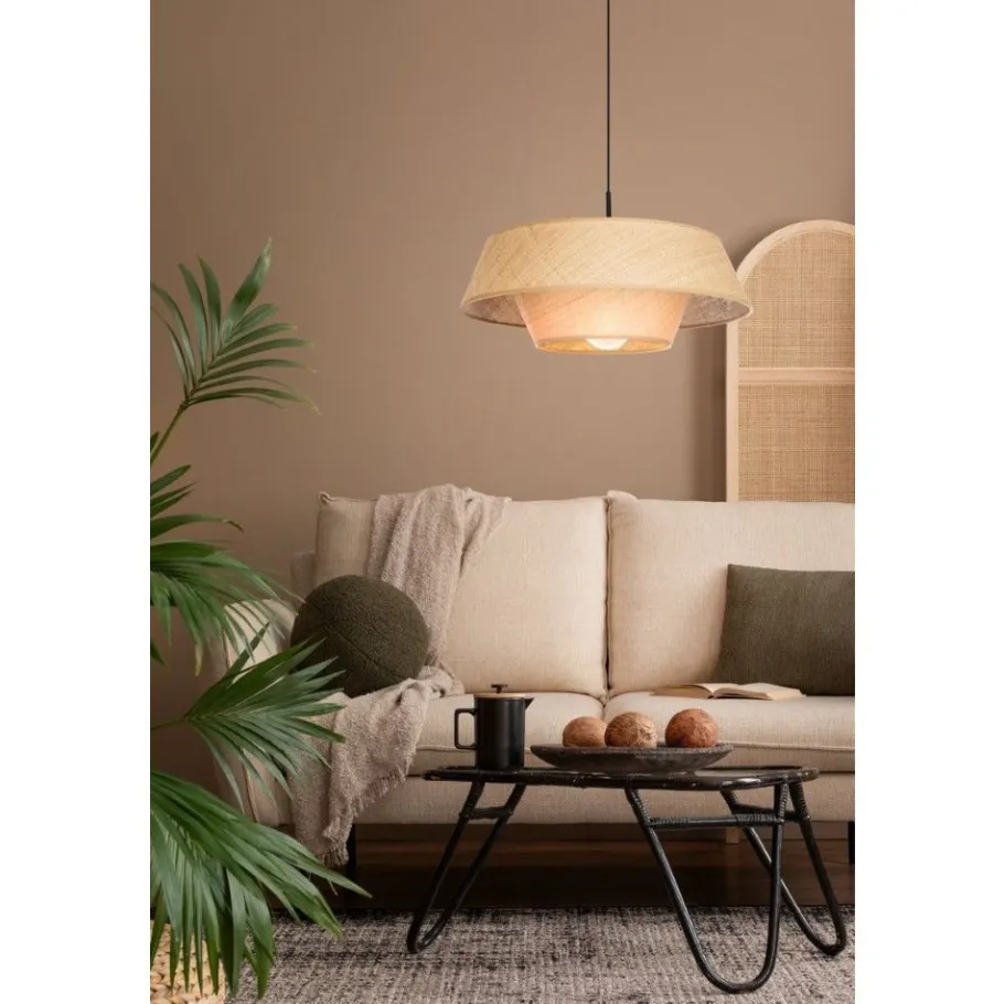 Eglo MARFORD hanglamp staal zwart / bast natuur H: 1100 mm | Ø 500 mm