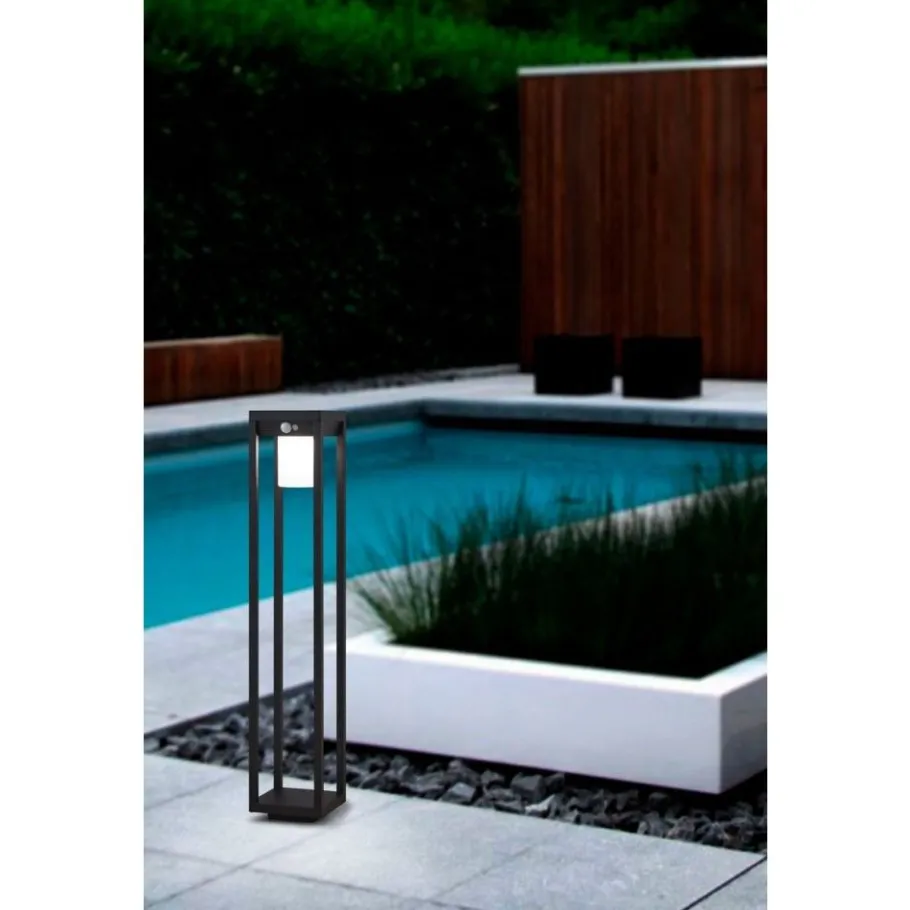 De MARTANO LED padlamp bestaat uit een hoekige zwarte aluminium behuizing en een witte kunststof kap. De buitenlamp heeft een geïntegreerd zonnepaneel en een lithium-ion batterij. De LED’s in de witte kunststof kap geven helder licht in 4000K. De buitenlamp is ook uitgerust met een bewegingssensor en schakelt het licht automatisch gedurende 45 seconden in. Slecht zichtbare plekken worden verlicht en ongewenste gasten worden afgeschrikt. Hij heeft ook een tweede modus, waarin hij permanent schijnt met 15 lumen. Dankzij het moderne ontwerp past de sensorlamp in elke buitenruimte.