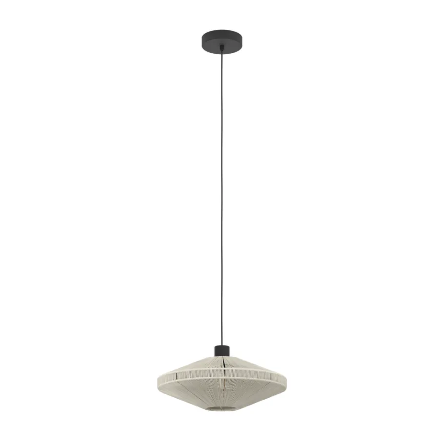Eglo MIDSUMER hanglamp staal zwart / textiel crème H: 1100 mm | Ø 380 mm Sale