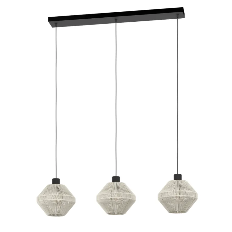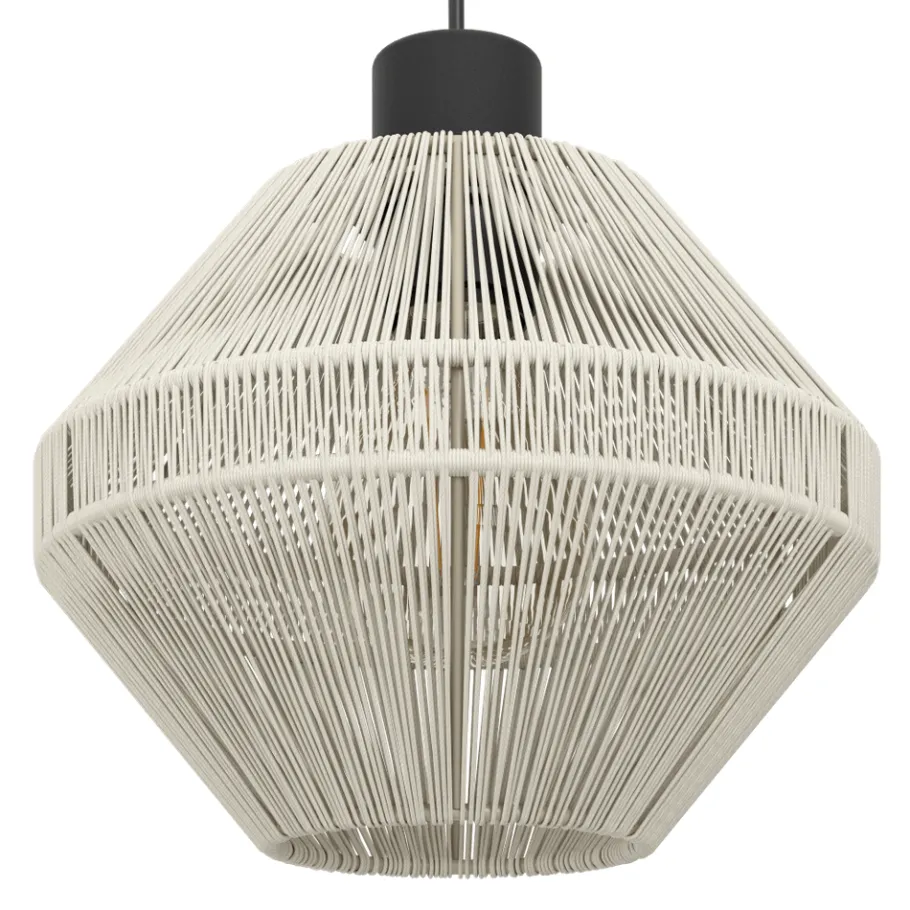 Eglo MIDSUMER hanglamp staal zwart / textiel crème H: 1100 mm Outlet