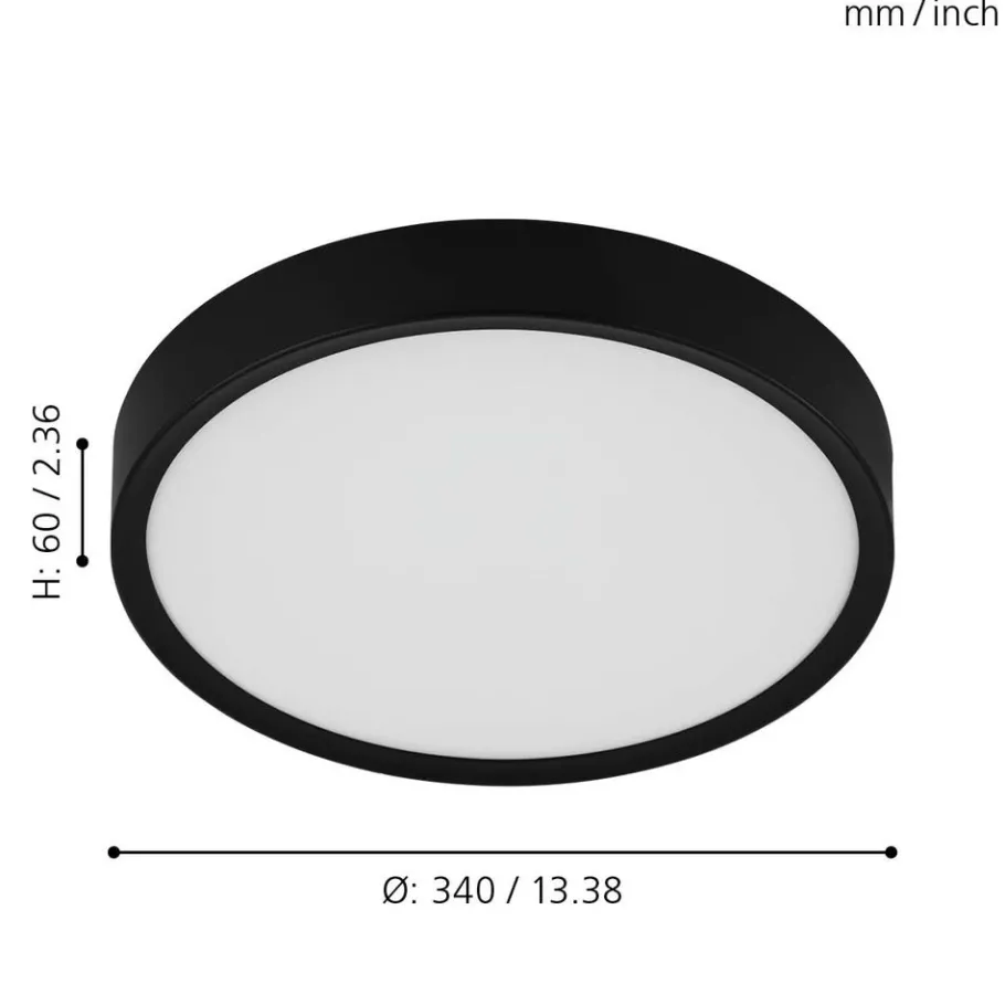 Eglo MUSURITA Plafondarmaturen kunststof, staal zwart / Kunststof wit H: 60 mm | Ø 340 mm Online