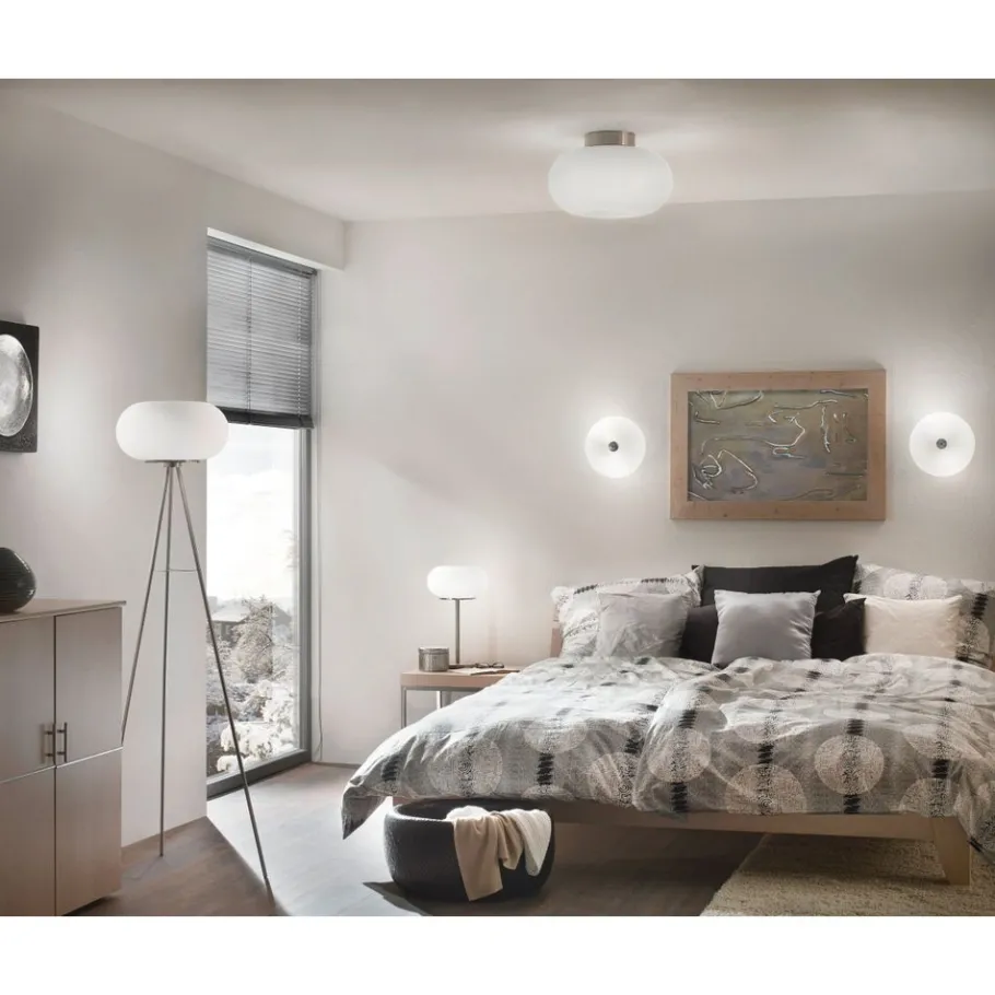Eglo OPTICA Wand-/plafondlamp staal nikkel-mat / glas opaal-mat wit H: 210 mm | Ø 375 mm Best