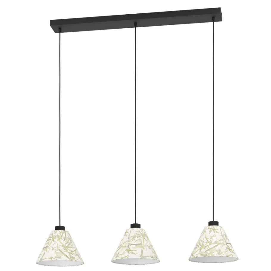 Eglo OXPARK hanglamp staal zwart / textiel met bamboebladeren wit, groen H: 1100 mm Discount