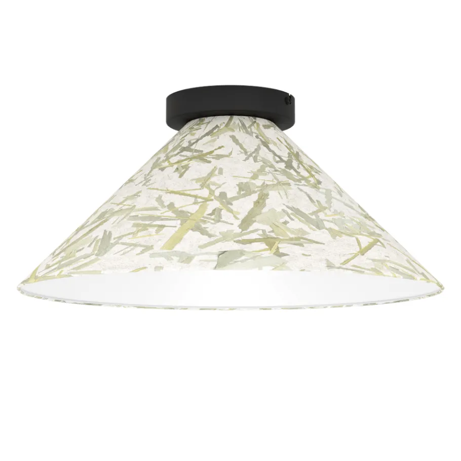 Eglo OXPARK Plafondarmaturen staal zwart / textiel met bamboebladeren wit, groen H: 195 mm | Ø 420 mm Sale