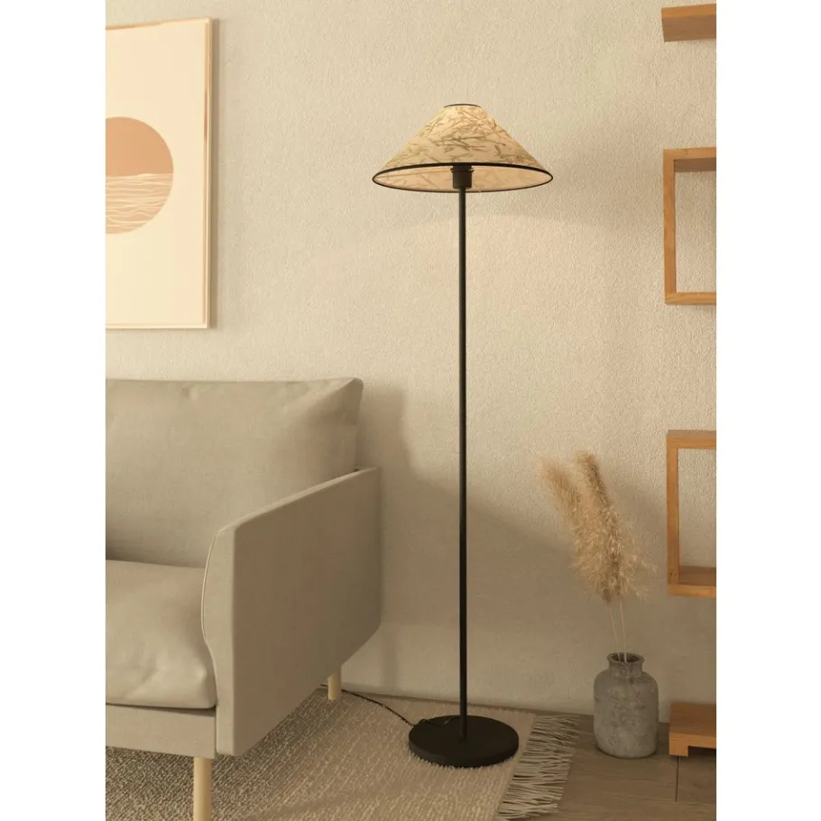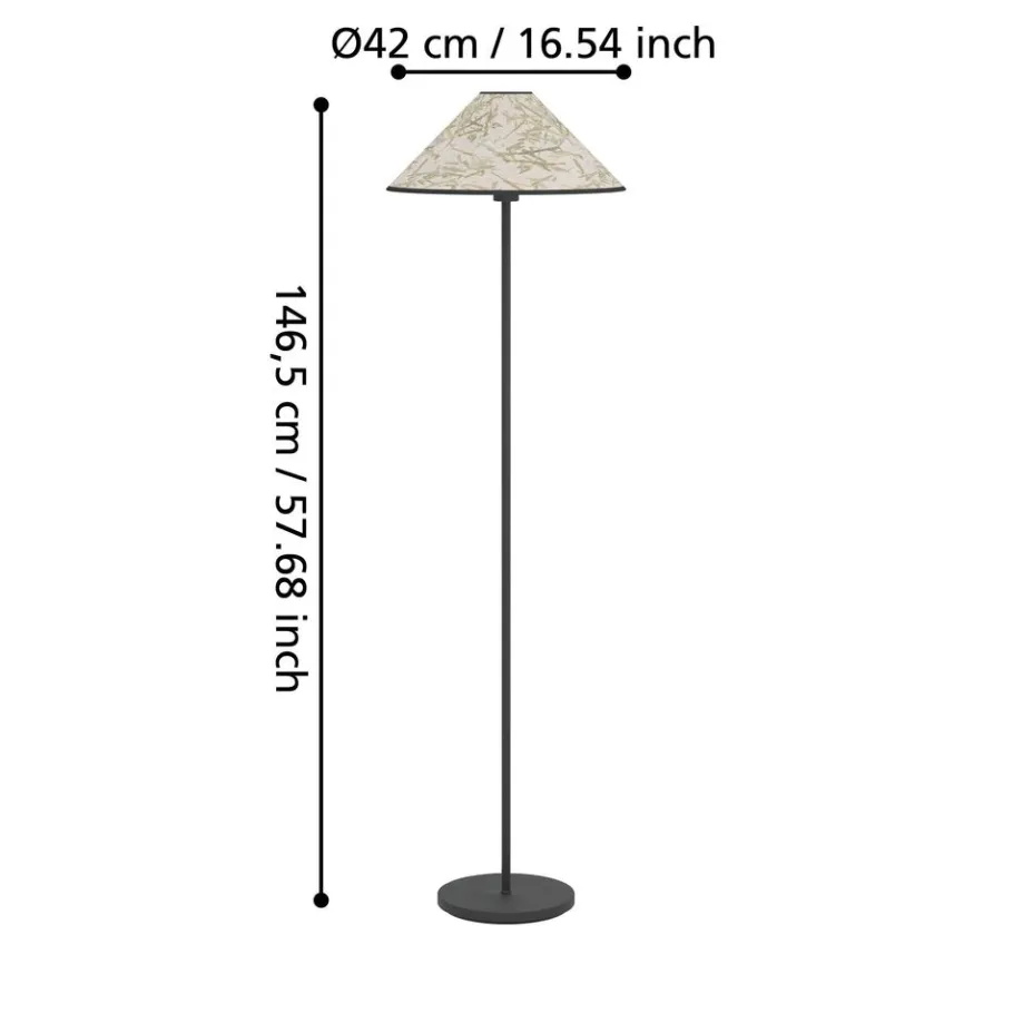 Eglo OXPARK Staande lampen staal zwart / textiel met bamboebladeren wit, groen H: 1465 mm | Ø 420 mm Clearance